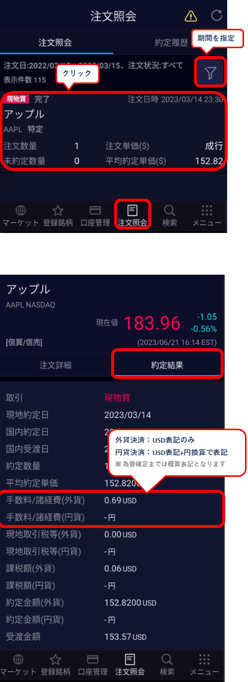 米国株式(現物)取引手数料の確認方法