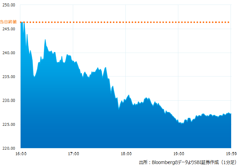 ●決算発表後の時間外取引(日本時間9:00時点):227.25ドル(-7.76%)